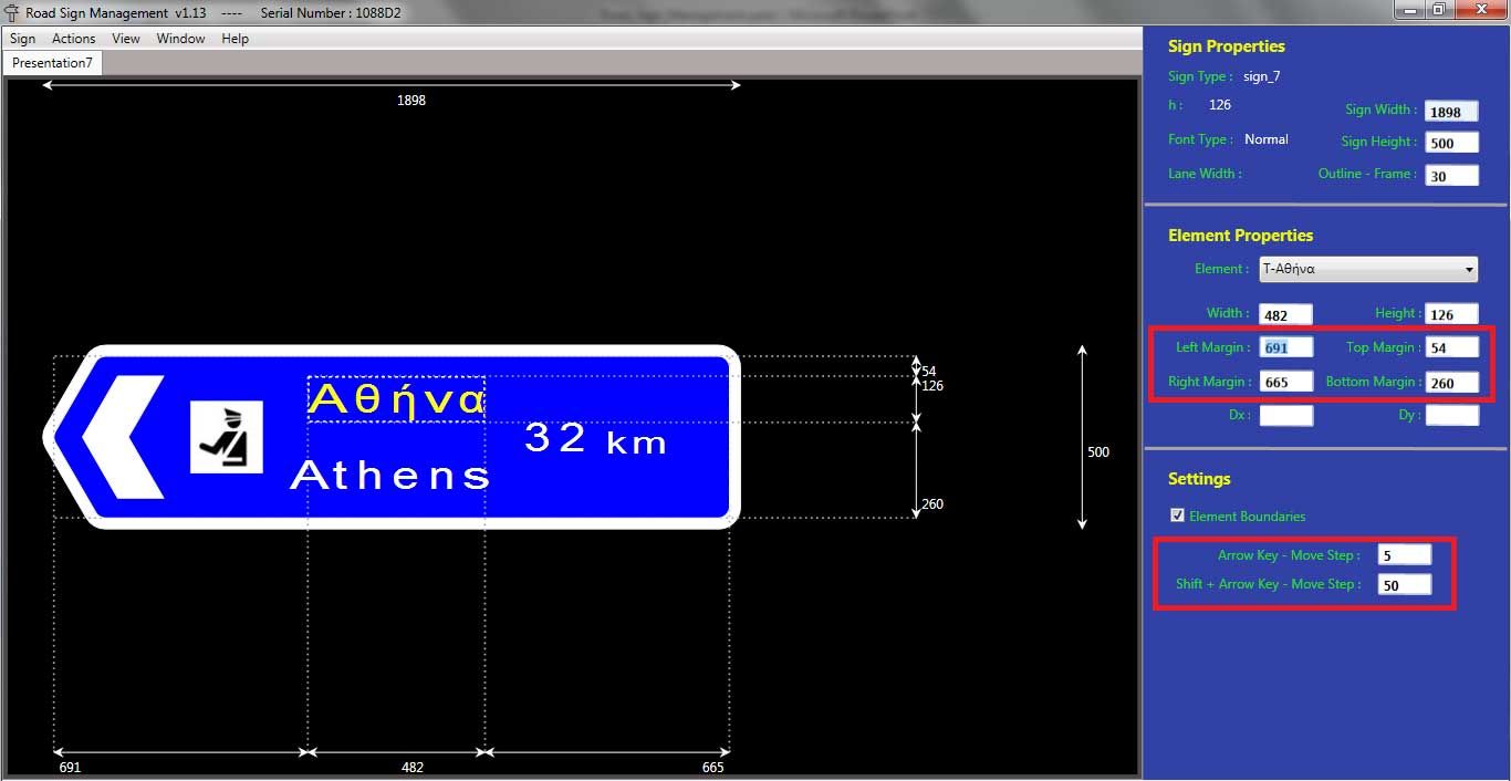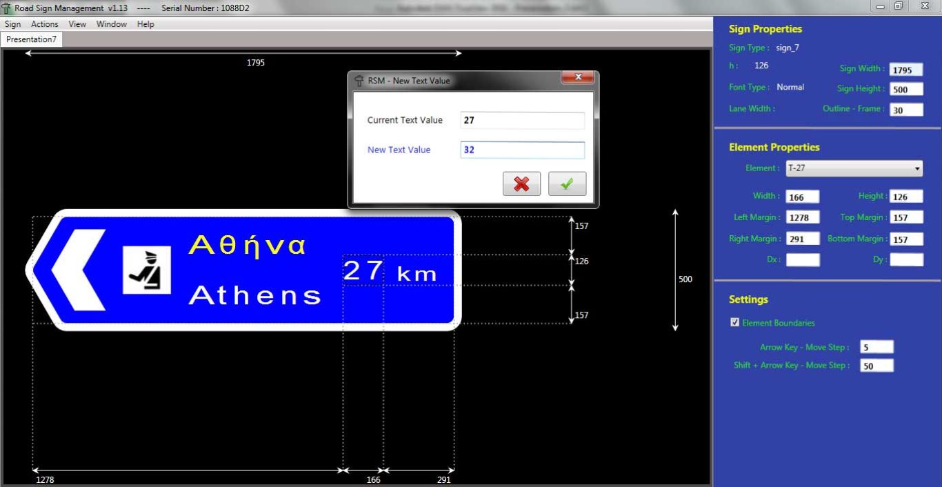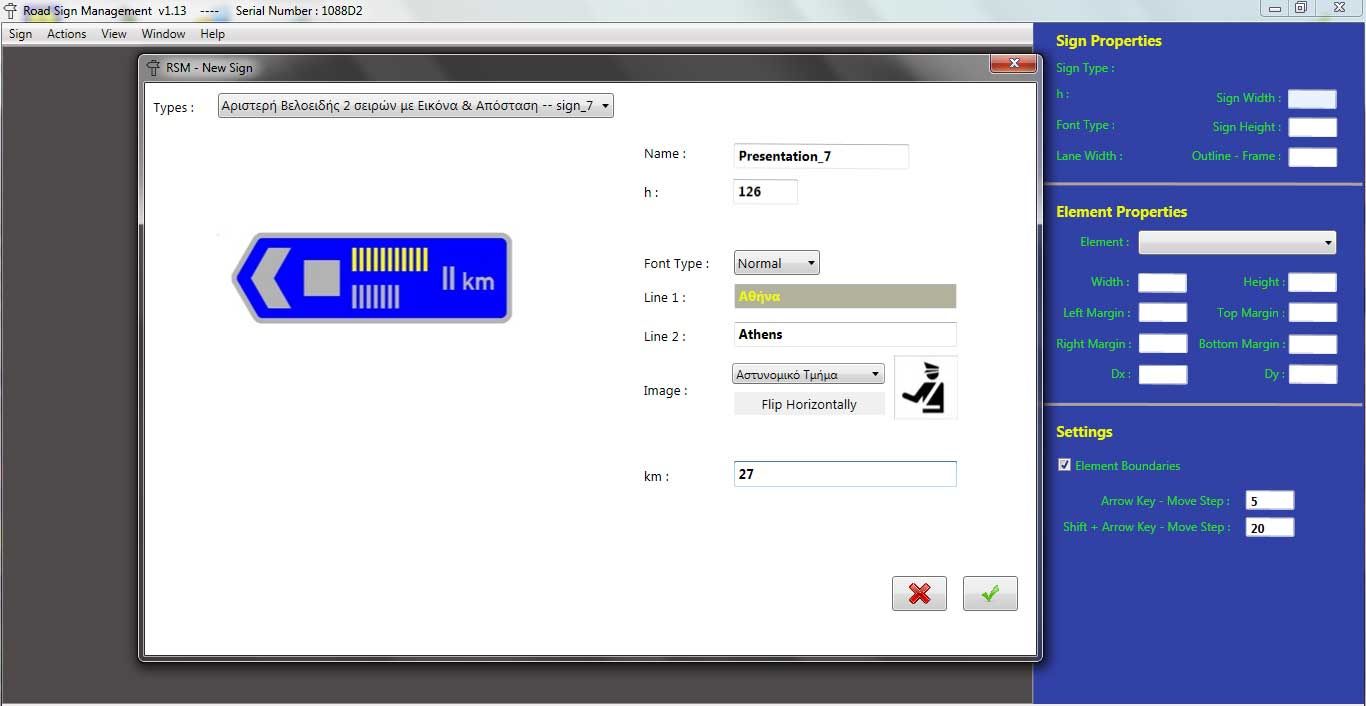 Σχεδιάστηκε στηριζόμενη στη δημιουργία μίας βιβλιοθήκης που περιλαμβάνει όλα τα στοιχεία διαμόρφωσης των πινακίδων, όπως βέλη, εμβλήματα, αναγραφές προορισμού κ.α, όπως αυτά προδιαγράφονται στους κανονισμούς. Με βάση τον τύπο πινακίδας και τα στοιχεία διαμόρφωσής του, πραγματοποιείται από την εφαρμογή RSM, σύνθεση και αυτόματη διαστασιολόγηση των στοιχείων αυτών. Παράλληλα παρέχεται η δυνατότητα επεξεργασίας, επανατοποθέτησης, επαναπροσδιορισμού και επίβλεψης των διαστάσεων του κάθε στοιχείου αλλά και όλης της πινακίδας με λεπτομέρεια χιλιοστού (mm).