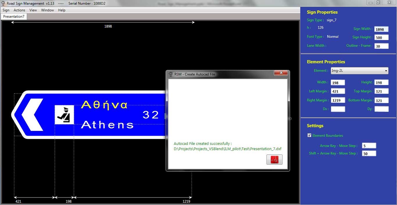 Η εφαρμογή Road Sign Management είναι μία σχεδιαστική εφαρμογή, η οποία ξεκίνησε να υλοποιείται το 2016, με στόχο τη δημιουργία μίας αυτοματοποιημένης διαδικασίας σύνθεσης Πληροφοριακών Πινακίδων Κάθετης Σήμανσης Αυτοκινητοδρόμων. , ακολουθώντας πιστά τους κανονισμούς (ΟΜΟΕ-ΚΣΑ -- ΦΕΚ Β’/905/20.05.2011 και "Περί Πινακίδων Σημάνσεως Οδών" -- ΦΕΚ Β’/676/06.07.1974 ).